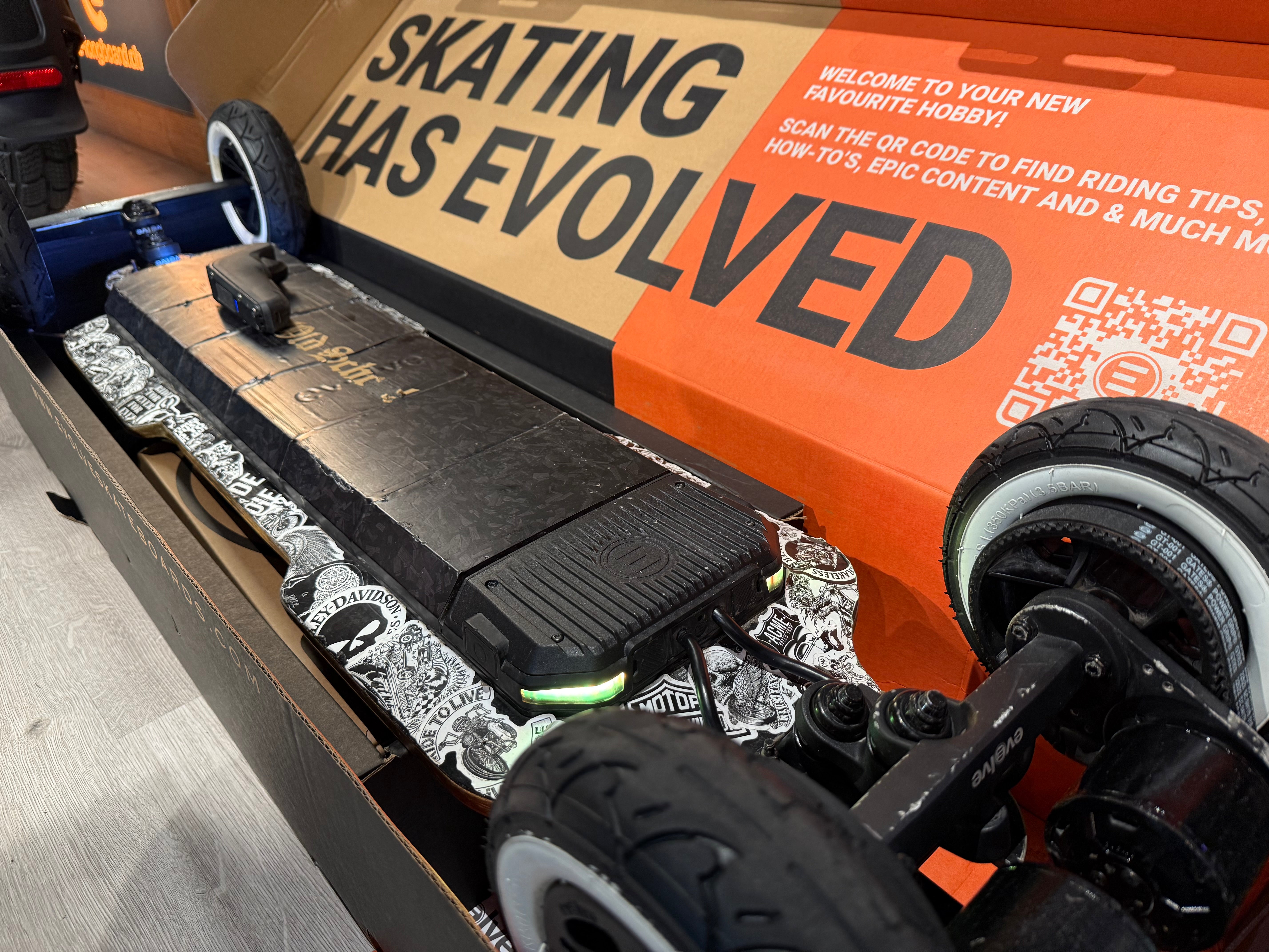 Du bekommst 37% mehr Akkukapazität und die 4-fache Leistung im Vergleich zum GTR mit dem gleichen schnittigen Look, für den die Evolve Boards bekannt und beliebt sind.